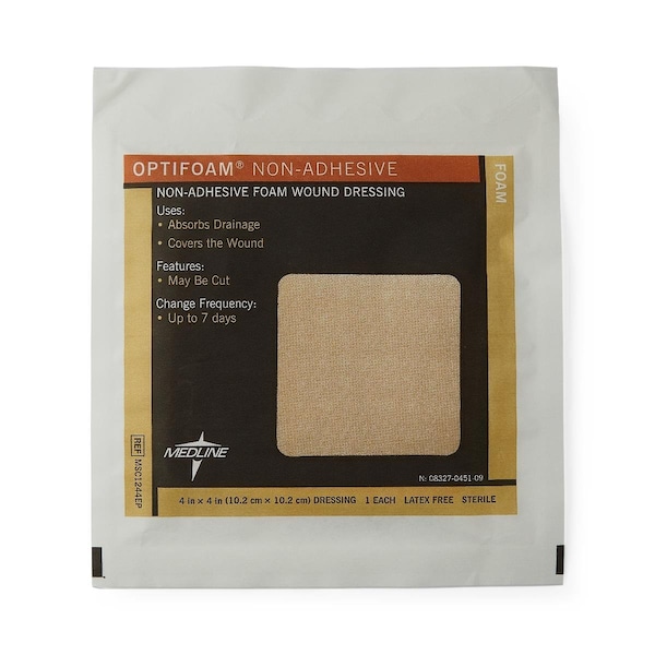 Optifoam Nonadhesive Foam Wound Dressing in Educational Packaging 4in x 4in