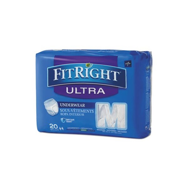 FitRight Super Protective Underwear features a body-contoured anatomical design for added user comfort. SensiSoft fabric for a soft, comfortable feel against the skin. Soft anti-leak guards and an ultra-absorbency core provide wetness protection. The acquisition and dryness layer wicks moisture away from the skin and into the core for ideal dryness and leakage protection. Linear embossing technology distributes fluid throughout the core for exceptional dryness and containment. Size printed on the back sheet identifies product size for a better fit and improves ease of care. Diaper Style: Adult; Diaper Size: Medium; Latex Free: Yes; Fastener: Elastic.