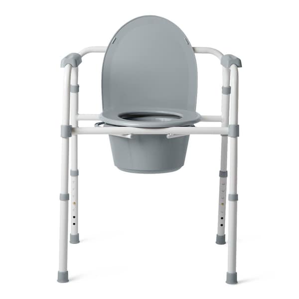 Steel 3-in-1 Folding Commode, Includes Seat with Lid, Bucket, Armrests, and Splashguard