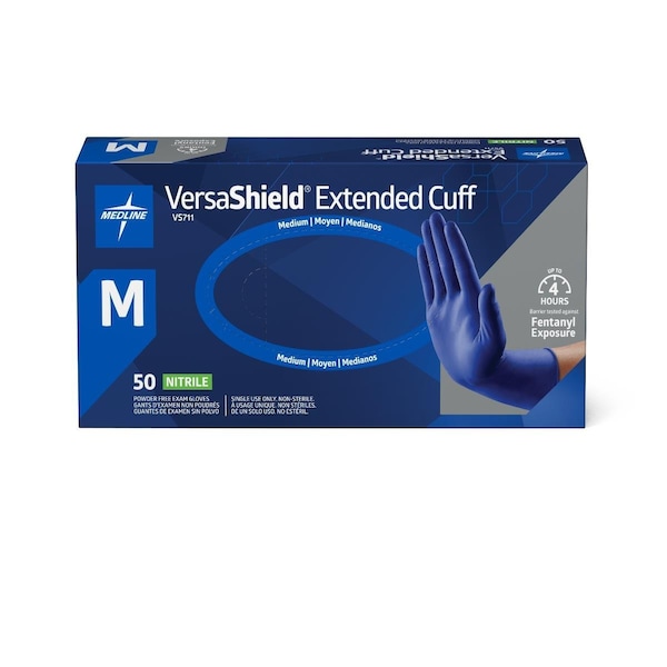 VersaShield Extended Cuff Powder-Free Nitrile Exam Gloves, Size M, 500PK