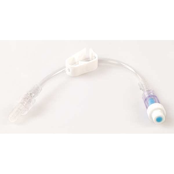 IV Extension Set, Clear, White, Material PVC, Length 7 in, Width 1/2 in, Standards FDA, For Use With IV Solutions, Features Needleless, Swabbable, Package Quantity 100