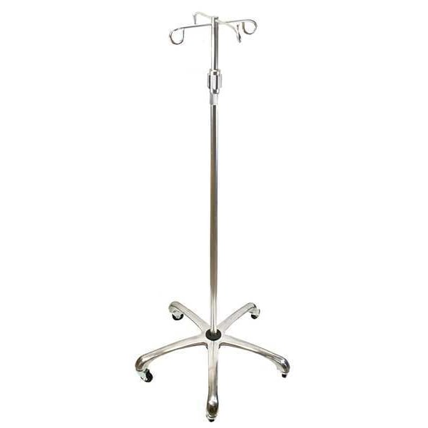 IV Pole, Style Cart Mounted, Aluminum, Color Silver, Height Range 48 in to 80 in, Width 1 in, Number of Legs 5, Number of Hooks 4, Weight Capacity 28 lb, For Use With Needleless IV Sets, Includes (4) Hooks