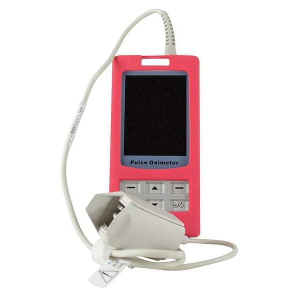 Pulse Oximeter, Test Location Fingertip, Display Type LED, Material ABS Plastic, Polycarbonate, Battery Size AA, Number of Batteries 3, Length 2 1/2 in, Height 5 in, Width 1 in, Measures SpO2 and Pulse Rate