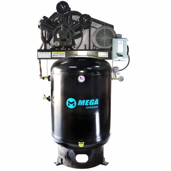 Mega Power Compressor, 10HP, 120 gal Vertical, 1PH 230V NIDEC Motor (Discontinued)