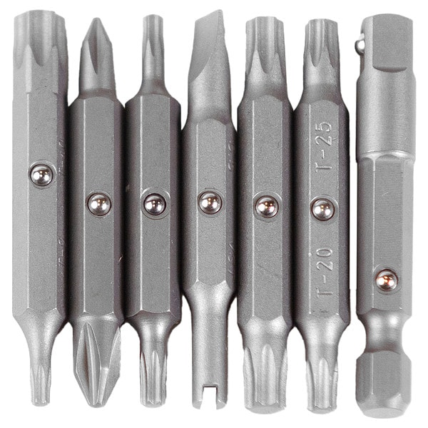Driver Bit Set, No. of Pieces 7, Hex Shank Size 1/4 in, Fastening Tool Material S2 Steel, Impact Rated Not Impact Rated, Hand, Includes 1/4 in Socket Adapter, Flat 5.5 - VST (Valve Stem), Phillips 1-2, TORX(R) 10-15, TORX(R) 20-25, TORX(R) 27-30, TORX(R) 9-40, Bit Length 2 in