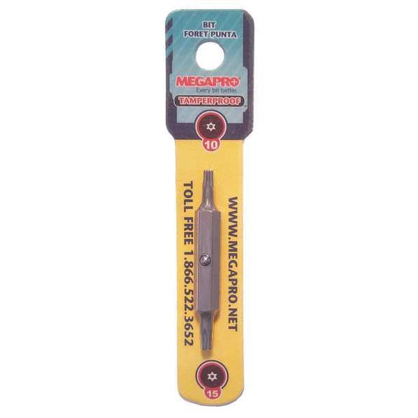 Screwdriver Replacement Bit, Torx, Point Size T10 and T15, Hex Size 1/4 In., Overall Length 2-1/4 In., S2 Steel
