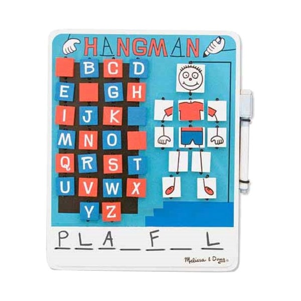 A classic word game with a twist! Kids will love thinking up words to stump their opponent, or taking their best guess to win it all! Includes one Hangman game board with erasable whiteboard, self-storing dry-erase marker and eraser. No loose pieces - ideal for travel! Sold as 2 complete, identical games.