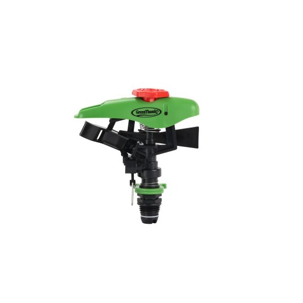 Green Thumb Poly Impulse Sprinkler Head 5800 SQFT Coverage Fits Any 1/2 Standard Connection Provides Full Or Partial Coverage Patented Impulse Arm Saves Water By Eliminating Back & Side Splash Diffuser Screw Allows Easy Fingertip Adjustment Of Water Stream For Even Coverage Impact Resistant Rust Resistant Polymer Construction.