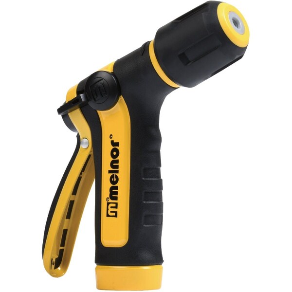 Melnor Vortex rear trigger pattern nozzle. 2 spray patterns one for intense cleaning and one for jet pinpoint cleaning. Slip resistant rubberized grips make it easy to hold even when wet. Patented spinning spray action. Great for cleaning gutters driveways siding and concrete pavement.
