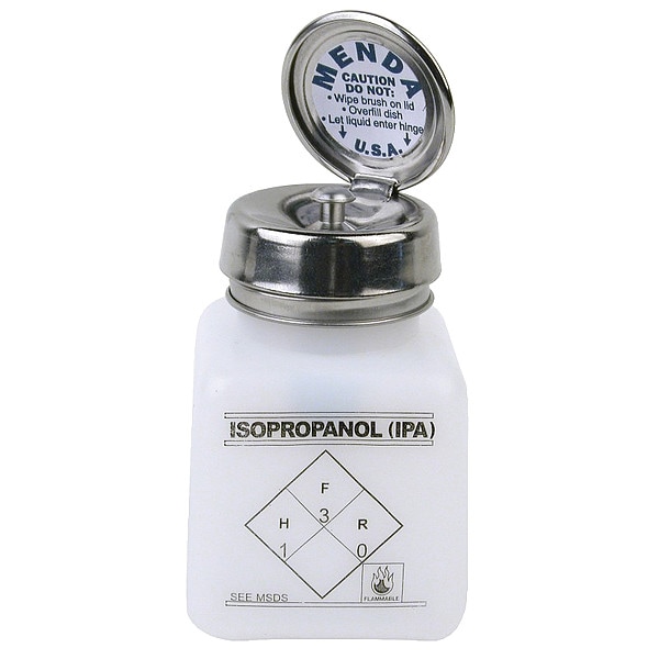 Dispensing IPA Bottle, Body Color Clear, Body Material HDPE, Body Diameter - Metric 53.98 mm, Bottle Type Dropper, Capacity - Metric 118.29 mL, Capacity - English 4 fl oz, Overall Height - Metric 85.72 mm, Closure Included Yes, Closure Liner Material Polyethylene, Screw Closure Size 38-400 mm, Closure Color Silver, Mouth Size Wide, Autoclavable No, Graduated Yes, Sterile/Non-Sterile Non-Sterile, Pre-Cleaned None, Graduation Increments - Metric 25 mL, USP Specification Not Applicable