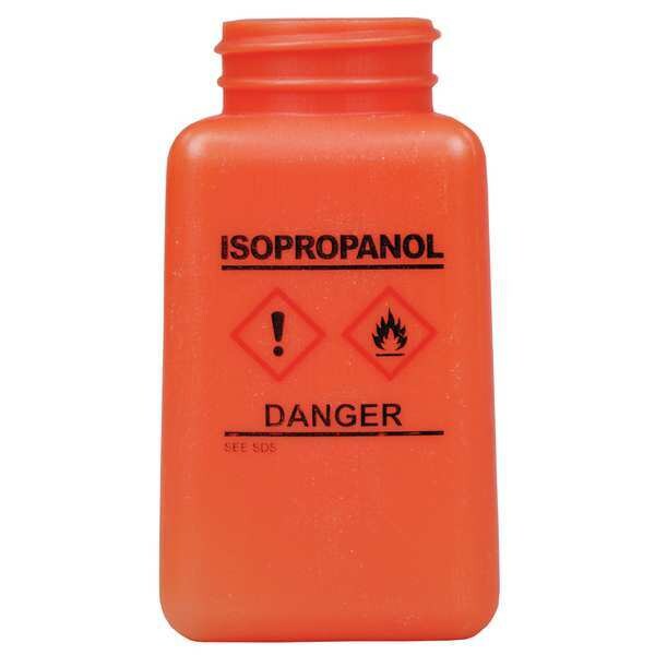 Graduated IPA ESD Bottle, Body Color Orange, Body Material HDPE, Body Diameter - Metric 53.98 mm, Bottle Type Dropper, Capacity - Metric 177.4 mL, Capacity - English 6 fl oz, Overall Height - Metric 101.6 mm, Clarity Opaque, Closure Included No, Closure Liner Material Not Applicable, Screw Closure Size 38-400 mm, Closure Color Not Applicable, Mouth Size Wide, Autoclavable No, Graduated Yes, Sterile/Non-Sterile Non-Sterile, Pre-Cleaned None, Graduation Increments - Metric 25 mL