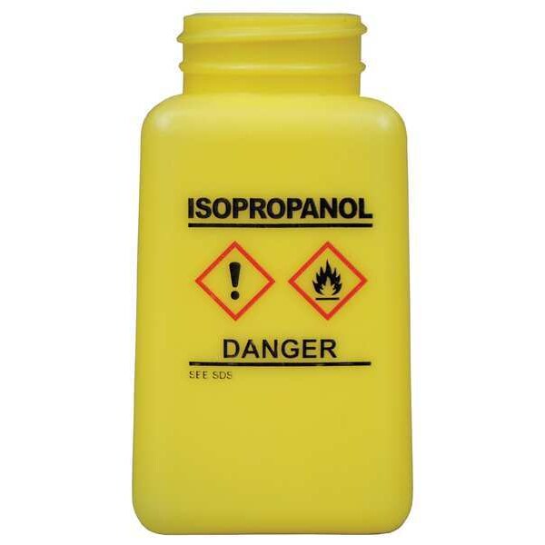 Graduated IPA ESD Bottle, Body Color Yellow, Body Material HDPE, Body Diameter - Metric 53.98 mm, Bottle Type Dropper, Capacity - Metric 177.4 mL, Capacity - English 6 fl oz, Overall Height - Metric 101.6 mm, Clarity Opaque, Closure Included No, Closure Liner Material Not Applicable, Screw Closure Size 38-400 mm, Closure Color Not Applicable, Mouth Size Wide, Autoclavable No, Graduated Yes, Sterile/Non-Sterile Non-Sterile, Pre-Cleaned None, Graduation Increments - Metric 25 mL