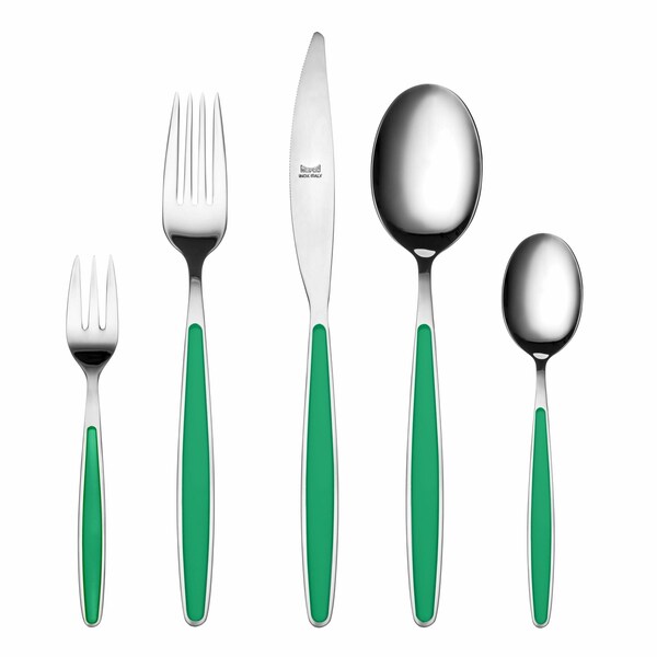 The Caramella Collection from Mepra is the perfect combination of color and sophistication. Elevate your dining experience with our Italian-crafted flatware, skillfully made from top-tier 18/10 stainless steel and resilient Fire-proof Silicon. Timeless in design, these pieces feature a colorful and elegant form. With a seamless construction, the Stainless Steel body extends to the handle's end, ensuring durability. The knives are enhanced with double serration for enduring sharpness and the entire set is dishwasher safe and backed by a lifetime warranty on the handle. Discover a perfect balance of aesthetics and functionality that's not only long-lasting but also food-safe and stylish.