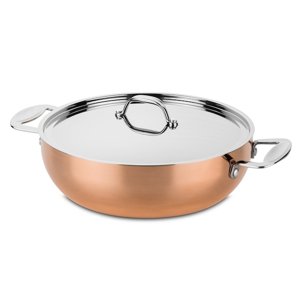 The Toscana Collection from Mepra combines the tradition of Italian Cuisine with the most advanced cooking technology to create an elegant and timeless collection of copper cookware. Experience the perfect fusion of functionality and elegance with our tri-ply cookware. Combining the exceptional conductivity of copper and pure aluminum, the hygiene of 18/10 Stainless Steel, and its capability to work on every type of heating surface, including induction, it's a masterpiece of culinary innovation. With mirror-polished surfaces, sturdy 18/10 Stainless Steel riveted handles, and graduated measurements inside, this cookware ensures even heat distribution for precise temperature control, elevating your cooking experience to new heights.