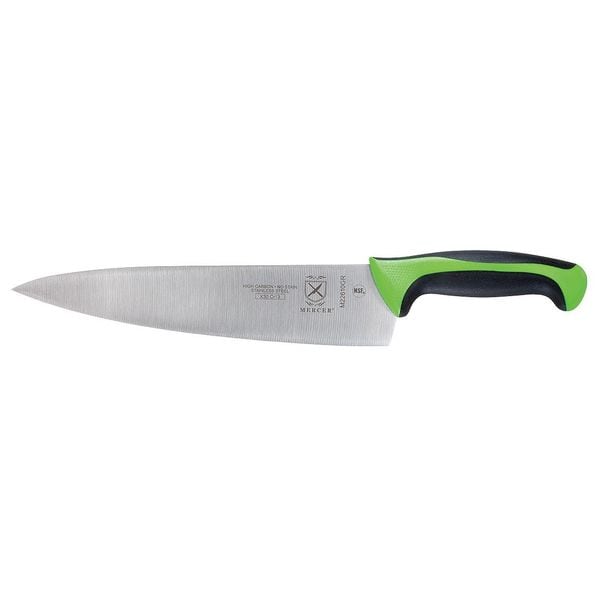Chefs Knife, FDA Compliant No, Forged/Stamped Stamped, Knife Type Chef's Knife, Blade Material Steel, Dishwasher Safe No, Handle Color Green, Blade Type Sharp Edge, Overall Length 10 in, NSF Certified Yes, Handle Material Santoprene/Polypropylene, Blade Length 10 in, Metal Detectable No, Number of Implements 1, Finger Guard Included Yes