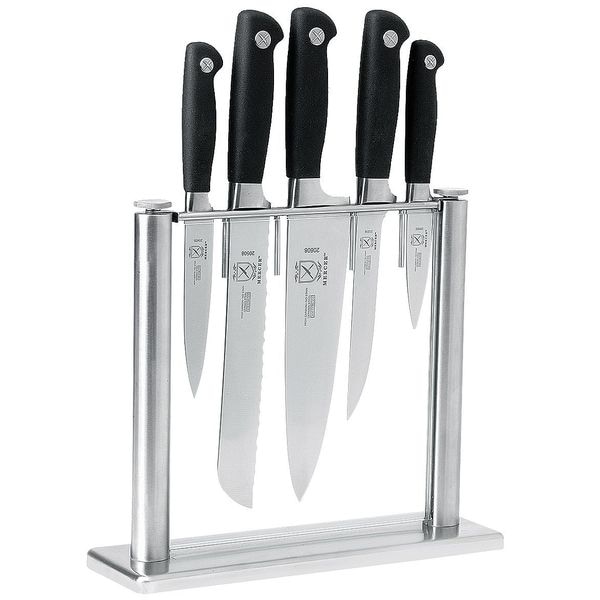 Knife Set, FDA Compliant No, Forged/Stamped Forged, Knife Type Knife Set, Blade Material Steel, Dishwasher Safe No, Handle Color Black, Blade Type Wavy Edge, Includes Knife Block, M20003 Paring Knife, M20106 Stiff Boning Knife, M20405 Utility Knife, M20508 Wavy Edge Bread Knife, M20608 Chef's Knife, Overall Length 13 1/8 in, NSF Certified Yes, Handle Material Santoprene, Blade Length 8 in, Metal Detectable No, Number of Implements 5