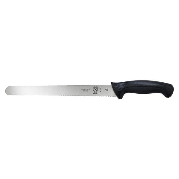 Slicer, FDA Compliant No, Forged/Stamped Stamped, Knife Type Slicer, Blade Material Steel, Dishwasher Safe No, Handle Color Black, Blade Type Sharp Edge, Wavy Edge, Overall Length 12 in, NSF Certified Yes, Handle Material Santoprene/Polypropylene, Blade Length 12 in, Metal Detectable No, Number of Implements 1, Finger Guard Included Yes