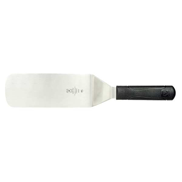 Turner, Overall Length 14 3/4 in, Product Type Turner, Handle Material Polypropylene, Handle Color Black, Edge Style Rounded, High-Heat Compatible Yes, Hanging Hole No, Blade Color Silver, Blade Length 8 in, Blade Material High Carbon Japanese Steel, Blade Width 3 in, Design Solid, Dishwasher Safe No, NSF Certified Yes
