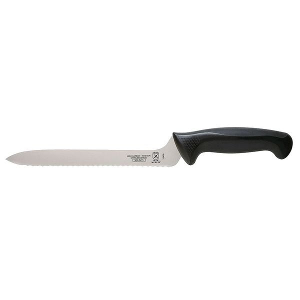 Utility Knife, FDA Compliant No, Forged/Stamped Stamped, Knife Type Offset Knife, Blade Material Steel, Dishwasher Safe No, Handle Color Black, Blade Type Sharp Edge, Wavy Edge, Overall Length 8 in, NSF Certified Yes, Handle Material Santoprene/Polypropylene, Blade Length 8 in, Metal Detectable No, Number of Implements 1, Finger Guard Included Yes