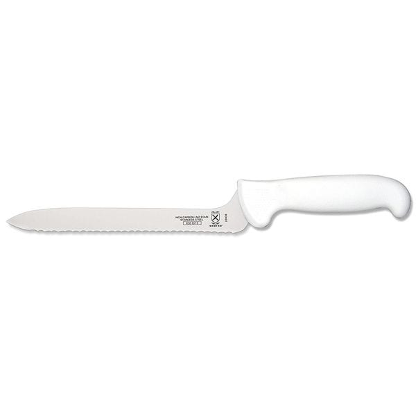 Utility Knife, FDA Compliant No, Forged/Stamped Stamped, Knife Type Offset Knife, Blade Material Steel, Dishwasher Safe No, Handle Color White, Blade Type Sharp Edge, Wavy Edge, Overall Length 8 in, NSF Certified Yes, Handle Material Polypropylene, Blade Length 8 in, Metal Detectable No, Number of Implements 1, Finger Guard Included Yes
