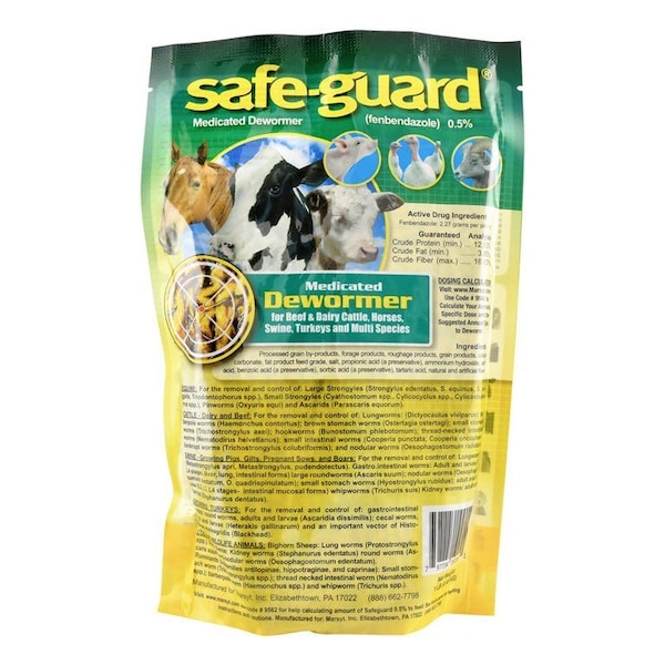 Broad spectrum multi-species dewormer.-For use in beef and dairy cattle, equine, swine, growing turkeys, wildlife and zoo animals.-Easy to feed pellet form.-Active ingredient: Fenbendazole 0.5%. NOT FOR SALE IN CALIFORNIA