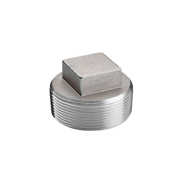 1-1/4 IN. 304 STAINLESS STEEL PLUG - MNPT - CLASS 150 - 300 PSI - IMPORT FITTINGS ARE USED TO JOIN TWO OR MORE LENGTHS OF PIPE OR TO CLOSE OFF THE END OF A PIPE. FITTINGS MAY CONNECT PIPE IN A STRAIGHT LINE, CHANGE THE DIRECTION OF FLOW, INCREASE OR REDUCE THE FLOW, OR CLOSE THE PIPE END TO STOP THE FLOW. IN ACCORDANCE WITH OUR ISO PROCEDURES, OUR LINE OF CLASS 150 ISO PATTERN STAINLESS STEEL FITTINGS MEET THE FOLLOWING SPECIFICATIONS: MATERIAL: 304 STAINLESS STEEL, THREADS:ANSI B1.20.1, DIMENSIONS ISO49. ADDITIONALLY, EACH FITTING UNDERGOES A THREAD TEST, PNEUMATIC PRESSURE TESTING, MATERIAL COMPOSITION ANALYSIS, AND BURRS ARE REMOVED TO AVOID SEVERING SEALANT AND TO PREVENT BAD SEALS.