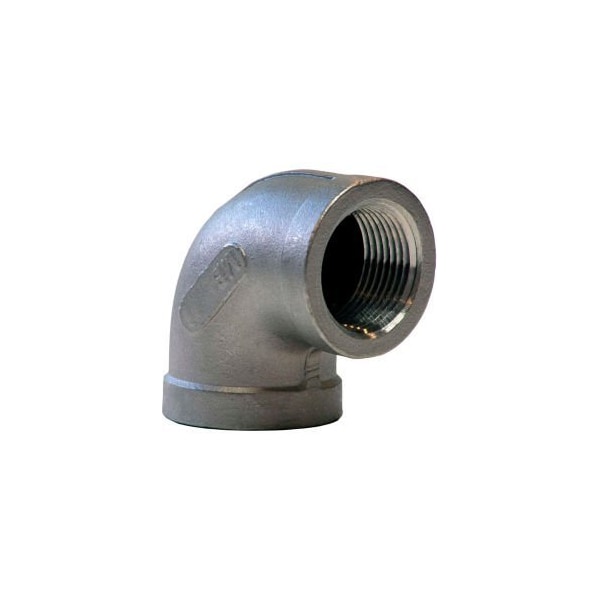 1 IN. 304 STAINLESS STEEL 90 DEGREE ELBOW - FNPT - CLASS 150 - 300 PSI - IMPORT FITTINGS ARE USED TO JOIN TWO OR MORE LENGTHS OF PIPE OR TO CLOSE OFF THE END OF A PIPE. FITTINGS MAY CONNECT PIPE IN A STRAIGHT LINE, CHANGE THE DIRECTION OF FLOW, INCREASE OR REDUCE THE FLOW, OR CLOSE THE PIPE END TO STOP THE FLOW. IN ACCORDANCE WITH OUR ISO PROCEDURES, OUR LINE OF CLASS 150 ISO PATTERN STAINLESS STEEL FITTINGS MEET THE FOLLOWING SPECIFICATIONS: MATERIAL: 304 STAINLESS STEEL, THREADS:ANSI B1.20.1, DIMENSIONS ISO49. ADDITIONALLY, EACH FITTING UNDERGOES A THREAD TEST, PNEUMATIC PRESSURE TESTING, MATERIAL COMPOSITION ANALYSIS, AND BURRS ARE REMOVED TO AVOID SEVERING SEALANT AND TO PREVENT BAD SEALS.