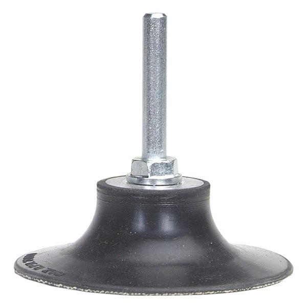 Quick Change Disc Backup Pad, Abrasive Mount Type Quick Change, Abrasive Mounting Quick Change System TS, Connector Size 1/4 in, Connector Type Straight Shaft, Backup Pad Shape Round, Device Material Rubber, Density Medium, Maximum Operating Speed 20,000 RPM, Number of Vacuum Holes Non-Vacuum, Color Black, Overall Length 2 1/2 in, Overall Width 3 in, Overall Diameter 3 in, Overall Thickness Not Applicable, Product Type Disc Backup Pad