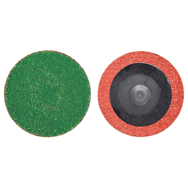 Quick-Change Sanding Disc, Abrasive Type Coated, Abrasive Material Zirconia Alumina, Backing Material Polyester, Backing Weight Y, Coating Coverage Closed, Grade Medium, Grit 120, Overall Diameter 1 1/2 in, Quick Change System TR, Series BlueFire R860, Maximum Operating Speed 30,000 RPM, Resistance Properties Tear, Color Green