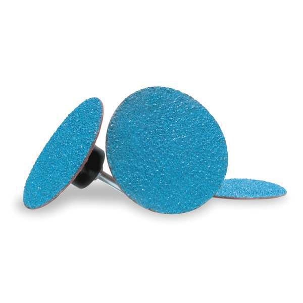 Quick-Change Sanding Disc, Abrasive Type Coated, Abrasive Material Zirconia Alumina, Backing Material Cloth, Backing Weight Y, Coating Coverage Closed, Grade Extra Coarse, Grit 36, Overall Diameter 2 in, Quick Change System TS, Series BlueFire R860, Maximum Operating Speed 30,000 RPM, Color Blue, Package Quantity 25