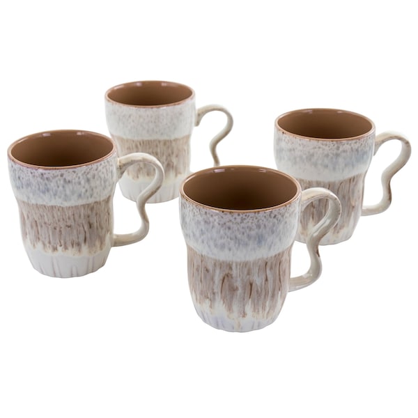Delight family and guests with the Meritage Pawtucket 4 Piece 18 Ounce Stoneware Mug Set in Brown. Grab a hold of the drinkware set's birch wood tree like design. Displayed in a stylish and cozy watercolor tones of tan, taupe, and brown. The large capacity mugs feature an easy to hold handle that is shaped for a variety hands, be it someone young or old. The stoneware material body allows the set to be dishwasher safe for quick cleaning and microwave safe for convenient heating. Enjoy an assortment of treats ranging from hot tea and coffee, to sweet juices and ice cream!
