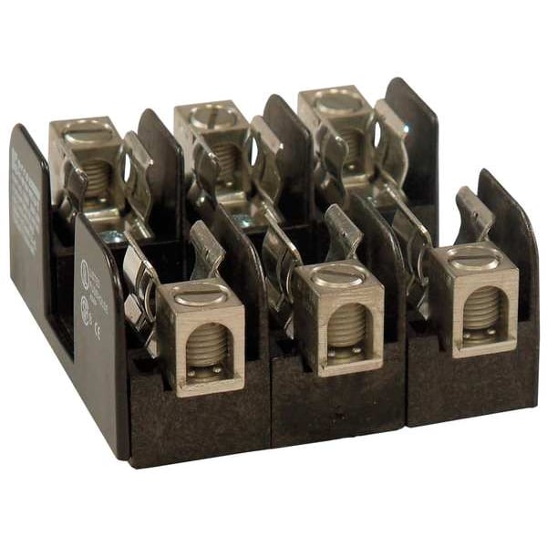 Fuse Block, Fits Fuse Type Class H, Class K5, Fuse UL Class H, K5, 0 to 30 A, Number of Poles 3, 250V AC/DC, For Fuse Size 2 in L x 9/16 in dia, Compatible Fuse Series NLN; NON; OT; REN; RF; RLN, Series 2HKRFB, Non-Indicating, Non-Rejection, Fuse Block Design Open, Wire Range 14 to 2 AWG, Mounting Style Bolt-Down, Body Material Glass Filled Polycarbonate, Connector Type Box Lug, Height 1.38 in, Width 3 in, Length 3 in, Spring Reinforced Clip No, Standards CSA Certified, UL Listed