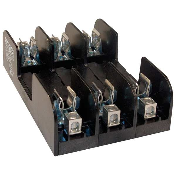 Fuse Block, Fits Fuse Type Class R, Fuse UL Class R, 0 to 30 A, Number of Poles 3, 600V AC/DC, For Fuse Size 5 in L x 13/16 in dia, Compatible Fuse Series A6D-R, A6K-R, FRS-R, KLSR, KTS-R, KWS-R, LLSRK, LPS-RK, TRS-R, Series 6HKRFB, Non-Indicating, Rejection, Fuse Block Design Open, Wire Range 14 to 2 AWG, Mounting Style Bolt-Down, Body Material Glass Filled Polycarbonate, Connector Type Box Lug, Height 7 in, Width 4.55 in, Length 2 in, Spring Reinforced Clip Yes