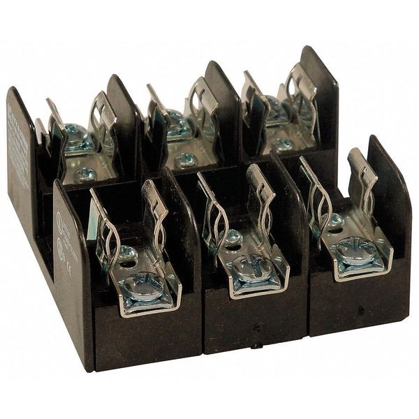 Fuse Block, Fits Fuse Type Class H, Class K5, Fuse UL Class H, K5, 0 to 30 A, Number of Poles 3, 250V AC/DC, For Fuse Size 2 in L x 9/16 in dia, Compatible Fuse Series NLN, NON, OT, REN, RF, RLN, Series 2HKRFB, Non-Indicating, Non-Rejection, Fuse Block Design Open, Wire Range 14 to 10 AWG, Mounting Style Bolt-Down, Body Material Glass Filled Polycarbonate, Connector Type Pressure Plate, Height 1.38 in, Width 3 in, Length 3 in, Spring Reinforced Clip Yes, Features Spring Reinforced Clip