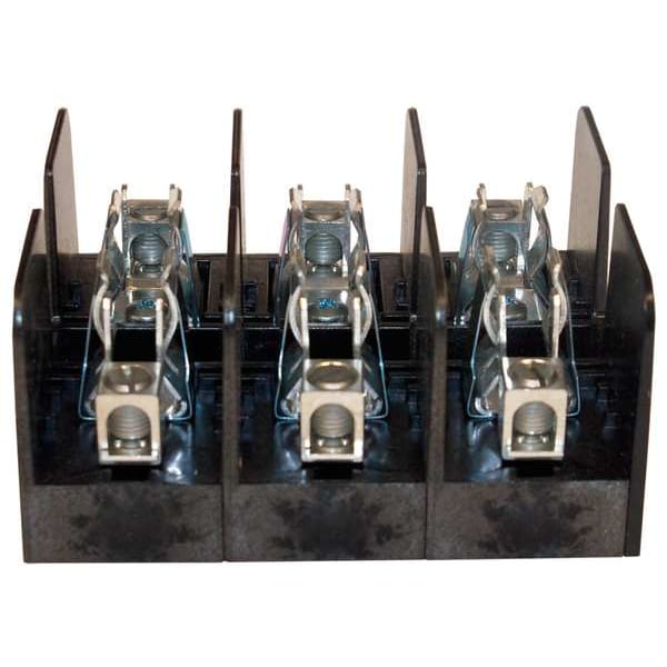 Fuse Block, Fits Fuse Type Class H, Class K5, Fuse UL Class H, K5, 31 to 60 A, Number of Poles 3, 600V AC/DC, For Fuse Size 5 1/2 in L x 1 1/16 in dia, Compatible Fuse Series NLS, NOS, OTS, RES, RFS, RLS, Series 2HKRFB, Non-Indicating, Non-Rejection, Fuse Block Design Open, Wire Range 14 to 2 AWG, Mounting Style Bolt-Down, Body Material Glass Filled Polycarbonate, Connector Type Box Lug, Height 2.12 in, Width 4.66 in, Length 4 in, Spring Reinforced Clip Yes, Standards CSA Certified, UL Listed