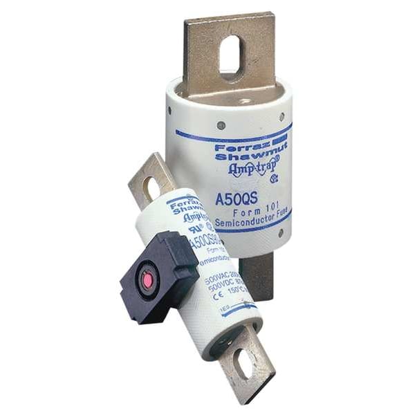 Semiconductor Fuse, 450 A, 500 V AC, 500 V DC, A50P Series, Non-Indicating, Fast-Acting, Body Style Bolt-On, Non-Rejection, Interrupt Rating 200kA at 500V AC, 87kA at 500V DC, Fuse Size 4-1/2 in L x 2 in dia, Length 4 1/2 in, Diameter 2 in, Equivalent Brand and Series A50QS, Bussmann FWH, Littelfuse L50S, Mersen A50P, Equivalent Series A50P, A50QS, FWH, L50S, Body Material Fiberglass, Single Element, Standards CE, UL Recognized, Guide JFHR2, File 60314, CSA Certified LR12636