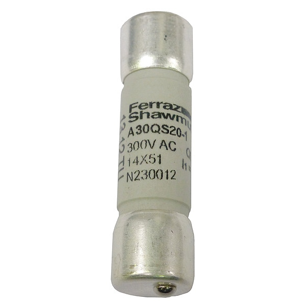 Semiconductor Fuse, 20 A, 300 V AC, 300 V DC, A30QS Series, Non-Indicating, Fast-Acting, Body Style Bolt-On, Non-Rejection, Interrupt Rating 100kA at 300V DC, 200kA at 300V AC, Fuse Size 2 in L x 9/16 in dia, Length 2 in, Diameter 9/16 in, Equivalent Brand and Series Bussmann FWX, Littelfuse L25S, Mersen A30QS, Equivalent Series A30QS, FWX, L25S, Body Material Ceramic, Single Element, Standards CE, UL Recognized, Guide JFHR2, CSA Approved