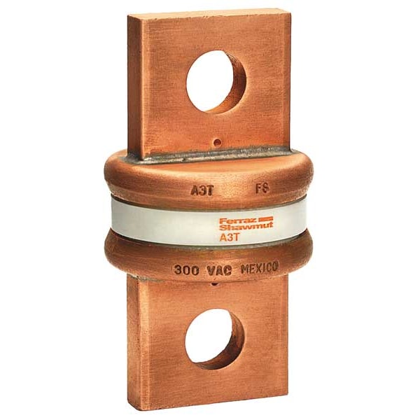 Fuse, 1,000 A, 300 V AC, 160 V DC, Class T, A3T Series, Non-Indicating, Fast-Acting, Body Style Bolt-On, Fits Fuse Block Style Non-Rejection, Interrupt Rating 200kA at 300V AC, 50kA at 160V DC, Fuse Size 4 in L x 2-1/2 in dia, Length 4 in, Diameter 2 1/2 in, Equivalent Brand and Series Bussmann JJN, Edison TJN, Littelfuse JLLN, Mersen A3T, Equivalent Series A3T, JJN, JLLN, TJN, Compatible Fuse Block Series 3TFB, 6TFB, Body Material Glass, Melamine, Single Element, Standards UL/CSA
