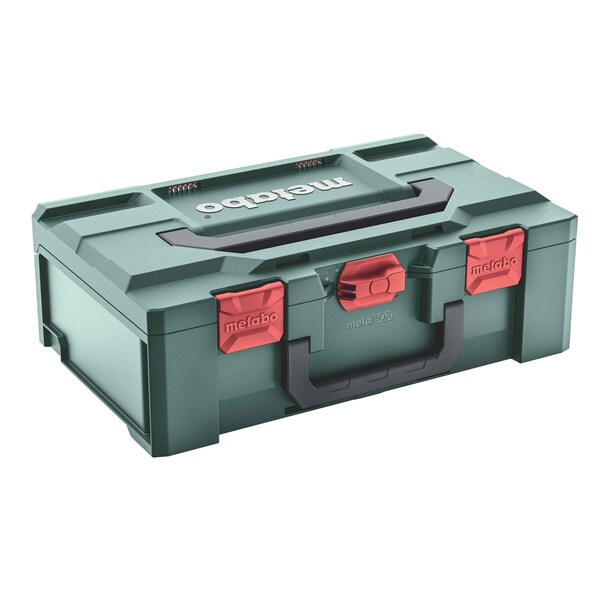 Metabo’s metaBOX cases are the solution for workshop, transport, and construction site. The boxes can be easily stacked and locked together for storage and efficient transportation to the job site or shop. The heavy duty tool storage boxes can handle a maximum load of 275 pounds and are protected against dirt and moisture with an IP43 rating. While locked together, box contents can be accessed at any position of the stack without issue. The cases have high-quality latches as well as a carrying handle on the top and front for easier handling.