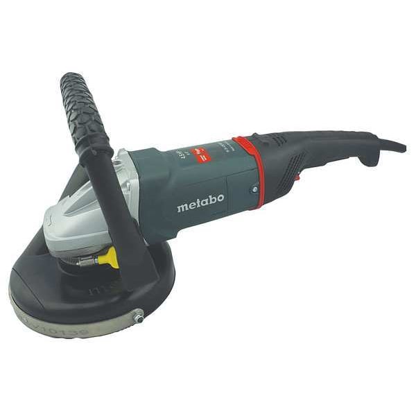 The METABO - 7" SURFACE PREP KIT is a corded angle grinder primarily intended for use in grinding and milling applications. This tool runs on a 15 A current and a 120V AC source and supports a single speed type, extending from a minimum of 4,600 RPM up to a maximum speed of 6,600 RPM. It features a standard head and a rat tail grip style. Despite its heavy-duty capacity, it features a vibration level of 1.5 m/sq sec for optimal user comfort, equipped with additional safety features like an adjustable guard and lock-off switch.