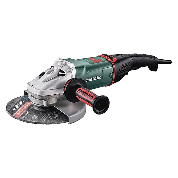 The METABO - WEPB 24-230 MVT is a corded Angle Grinder designed for cutting, grinding, polishing and surface preparation on metal, masonry, concrete and other materials. This handheld power tool has a brushless motor and a rotating abrasive or cutting disc with a diameter of 9 inches. The grinder operates at a consistent speed of 6,600 RPM, allowing for work at this speed.