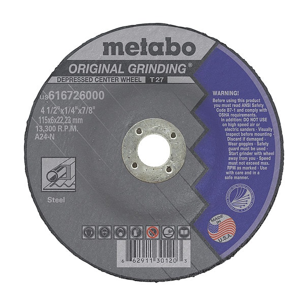 Depressed Center Grinding Wheel, Primary Material Application Steel, Compatible Tool Type Angle Grinder