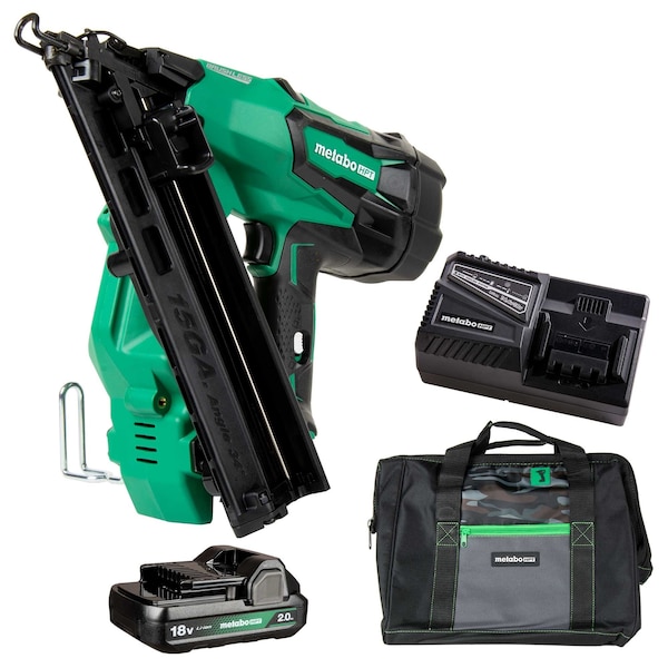The Pro Preferred Brand of Pneumatic Nailers introduces the 18V Brushless Cordless 15-Gauge Angled Finish Nailer - NT1865DMAST that is taking cordless nailing to the next level. It now comes with a 18V 2.0Ah battery with fuel gauge for convenience. No longer will you have to worry about hoses, compressors or gas cartridges. Metabo HPT is proud to build upon their strong pneumatic heritage and offer a professional cordless option. Equipped with brushless motor technology, this angled finish nailer delivers increased power with less weight, a longer tool life and longer runtime per charge. This cordless angled finish nailer features an impressive zero ramp up time, and can drive approximately 800 nails per charge while being fast, accurate and flush. Metabo HPT's cordless finish nailer is a sure thing to get finish work done more efficiently, completely and comfortably. The 18V 15-Gauge Cordless Angled Finish Nailer is a part of the expanding MultiVolt System of 18-Volt and 36-Volt power tools from Metabo HPT. GO lighter with 18V batteries or GO longer with the unique MultiVolt battery that works on both 18V and 36V tools to double your runtime for up to 8.0Ah of run time per charge for more power on the GO.
