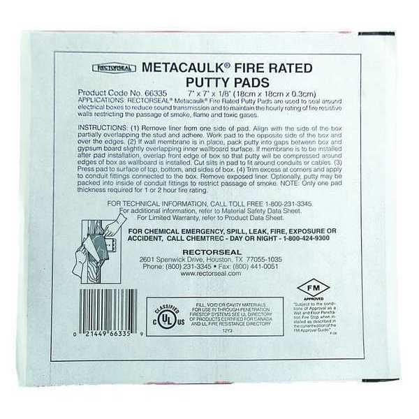 Fire Barrier Putty, Bag, 7"W x 7"L x 1/8"D