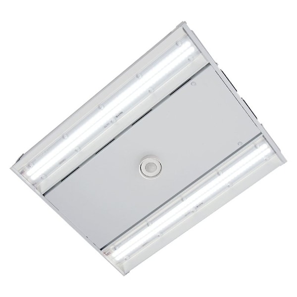 For high ceilings. Durable lightweight steel construction. Commercial-grade wraparound light. Dimmable. Features 0-10v dimming to 10 percent. CULus damp location listed, RoHS compliant.