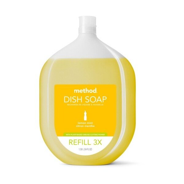 Method Products Dish Soap,Manual,Capped Refill,Lemon Mint,54oz,Yellow SOAP,DSH,REFILL,LMMINT,54OZ