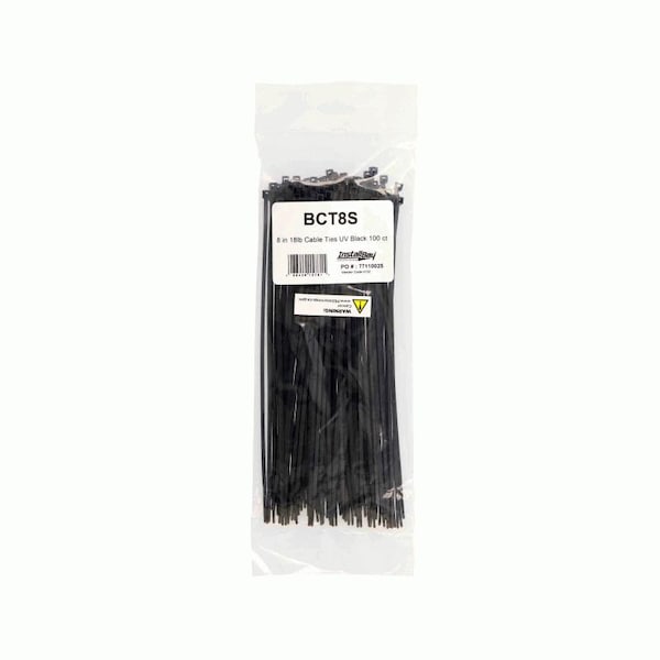 Cable Tie, 8 in L, Black, 18 lb Strength, 100 PK