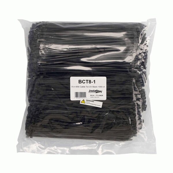 Cable Tie, 8 in L, Black, 40 lb Strength, 1000 PK