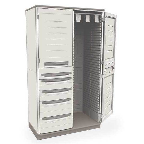 Catheter Storage Cabinet, Mobility Stationary, Number of Shelves 3, Number of Catheter Hooks 15, Number of Catheter Slides 3, Number of Doors 2, Maximum Number of Catheter Hooks 30, Maximum Number of Catheters 300, Antimicrobial Yes, Door Handle Type Recessed Pull, Door Opening 225 Degrees , Drawer Height 3 in, 6 in, 9 in, Overall Depth 23 3/8 in, Overall Height 72 1/2 in, Overall Width 41 1/4 in, Cabinet Color Taupe, Cabinet Material Polymer, Cabinet Storage Components Catheter Storage, Drawers
