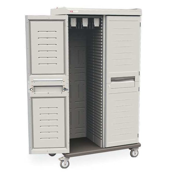 Catheter Storage Cabinet, Mobility Mobile, Number of Shelves 0, Number of Catheter Hooks 30, Number of Catheter Slides 6, Number of Doors 2, Number of Drawers 0, Maximum Number of Catheter Hooks 60, Maximum Number of Catheters 720, Antimicrobial Yes, Door Opening 270 Degrees , Overall Depth 25 in, Overall Height 76 in, Overall Width 43 in, Cabinet Color Taupe, Cabinet Material Polymer, Cabinet Storage Components Catheter Storage, Caster Wheel Diameter 5 in